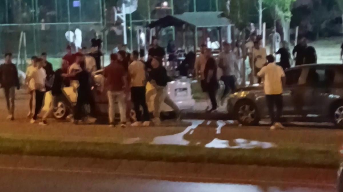 Görüntülerde, bir gencin yumrukla ardında tekmelerle başka bir genci darbettiği ve arkadaşlarının da kavgaya dahil olmasıyla taraflar arasında kavganın büyüdüğü görüldü.