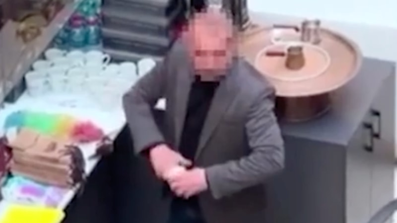 Dükkan sahibinin bardakları tükürüğüyle sildiği anlar, cep telefonu kameralarına saniye saniye yansıdı.