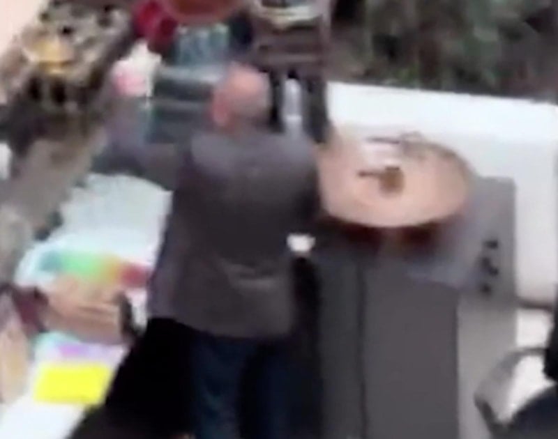Alışveriş merkezinin üst katlarından gözüken olay çevredeki vatandaşlar tarafından tepki çekti.
