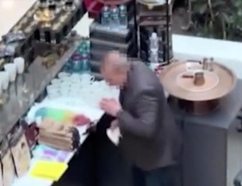 İşletme sahibi, elindeki bardakların içine tükürerek temizledi.