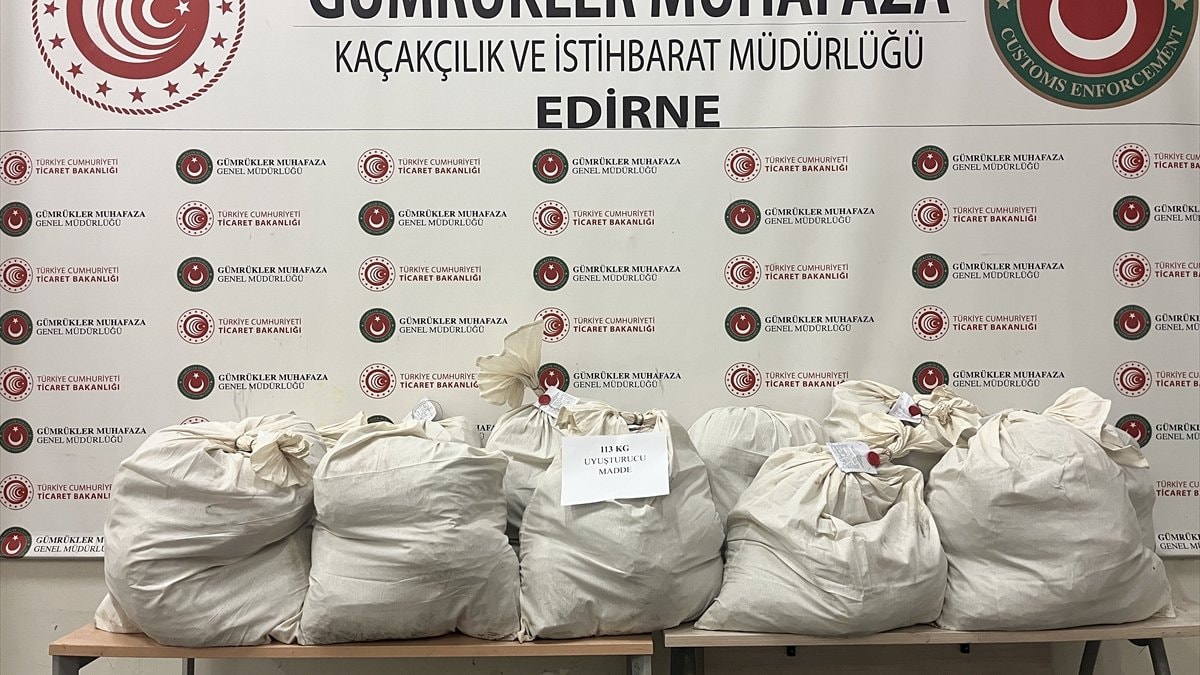 - Edirne'de Kapıkule Gümrük Kapısı'nda 113 kilo 664 gram esrar ele geçirildi.