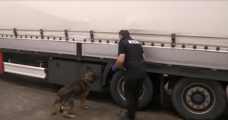 Şüpheli yoğunluk tespit edilen tırlarda narkotik köpeği Neptün ile arama yapıldı.