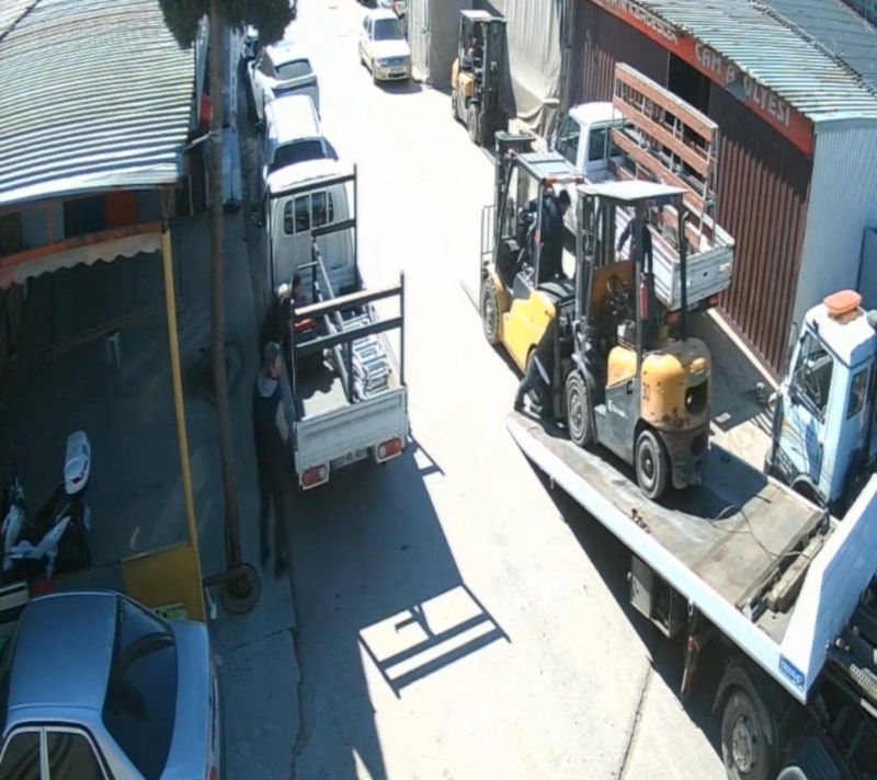 Şehir merkezindeki Sanayi Sitesi'nde forkliftlerin arasındasında sıkışan işçi yaşamını yitirdi. Arızalı bir forkliftin kurtarıcıya yüklenmesi sırasında yaşanan kaza, güvenlik kameralarına anbean yansıdı.