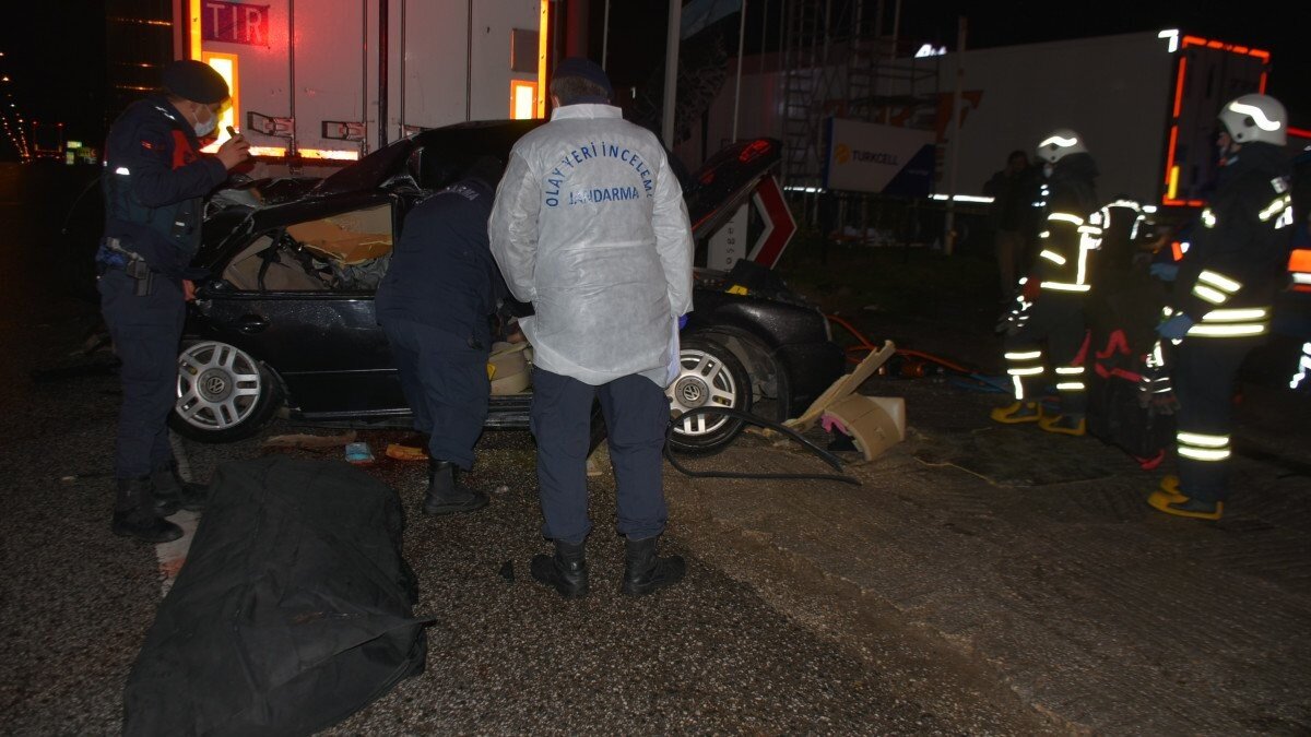 Edirne'de Hakkı Omarköy yönetimindeki otomobil, yağmur nedeniyle kayganlaşan yolda sürücüsünün direksiyon kontrolünü kaybetmesiyle önce bariyerlere ardından da emniyet şeridinde park halinde bulunan tıra arkadan çarptı.