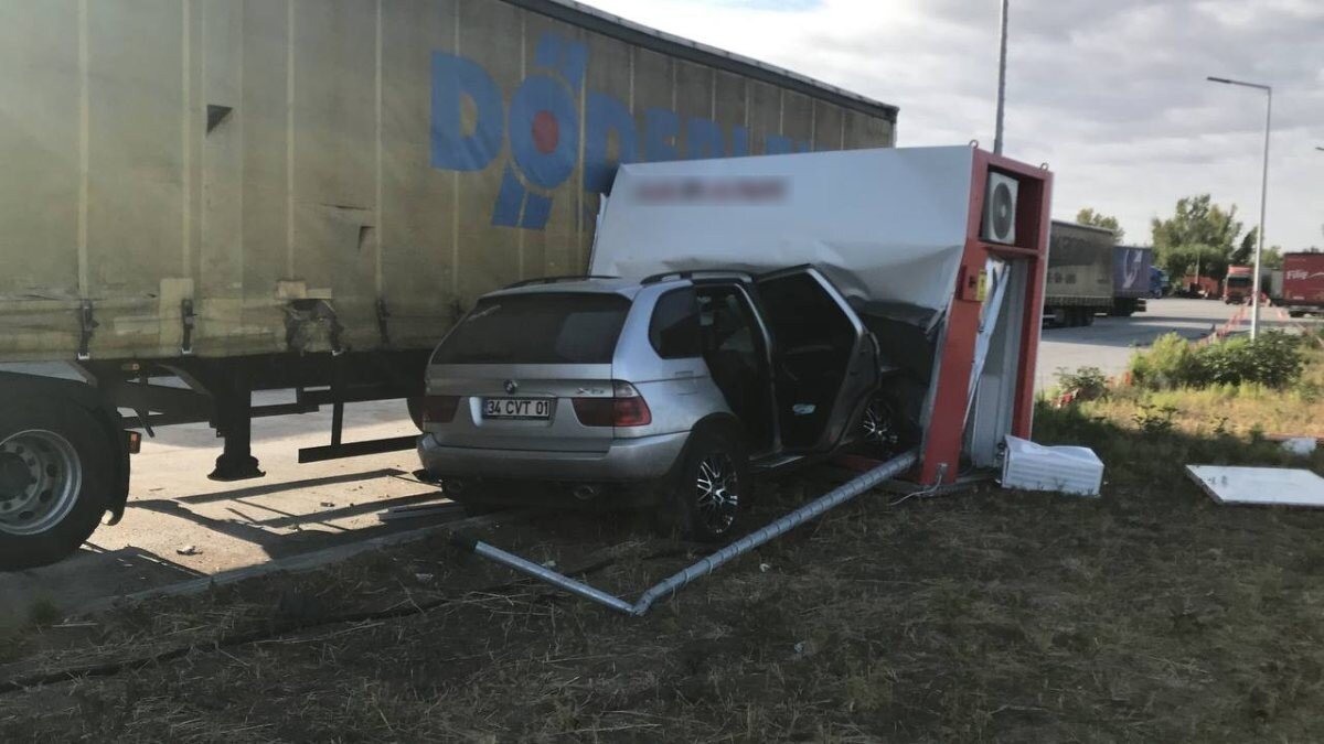 Çarpışmanın etkisiyle kontrolünü kaybeden araç, yol kenarındaki tıra ve benzinliğin girişinde duran ATM’ye de çarptı.
