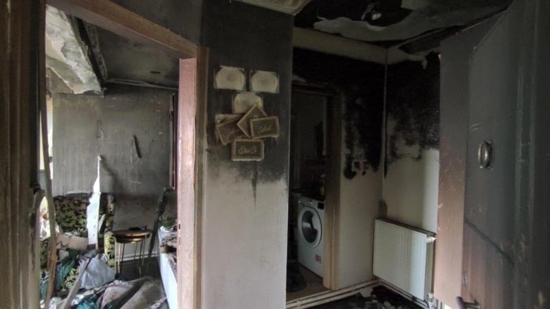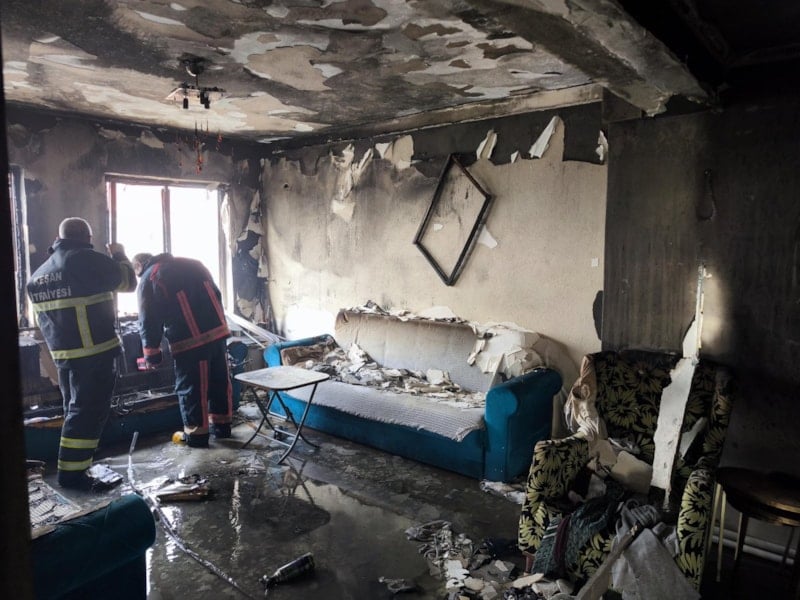 Yangın sonucu evdeki eşyalar kullanılamaz hale geldi.