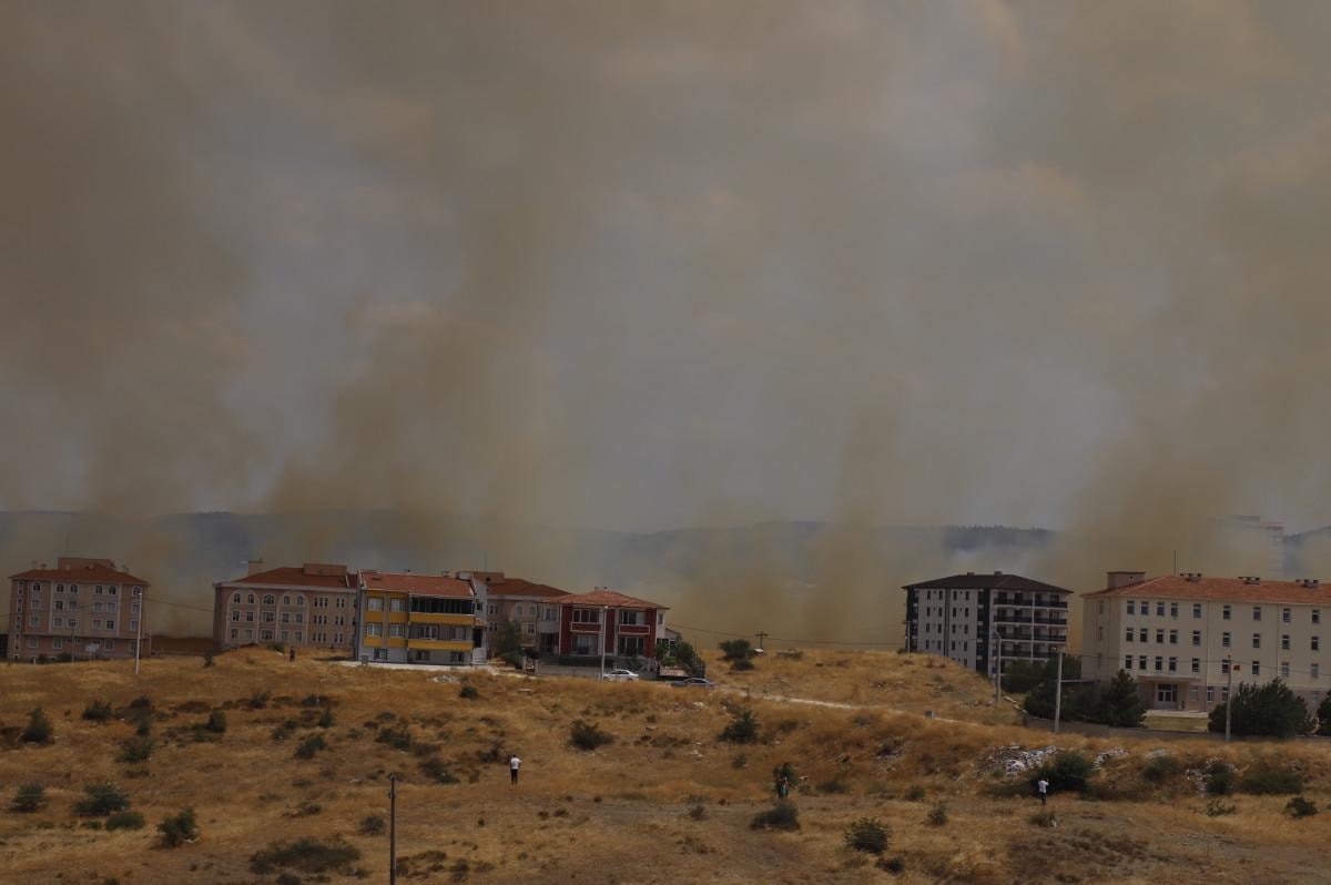 Alevler, rüzgarın da etkisiyle biçilmiş buğday tarlasına sıçradı.