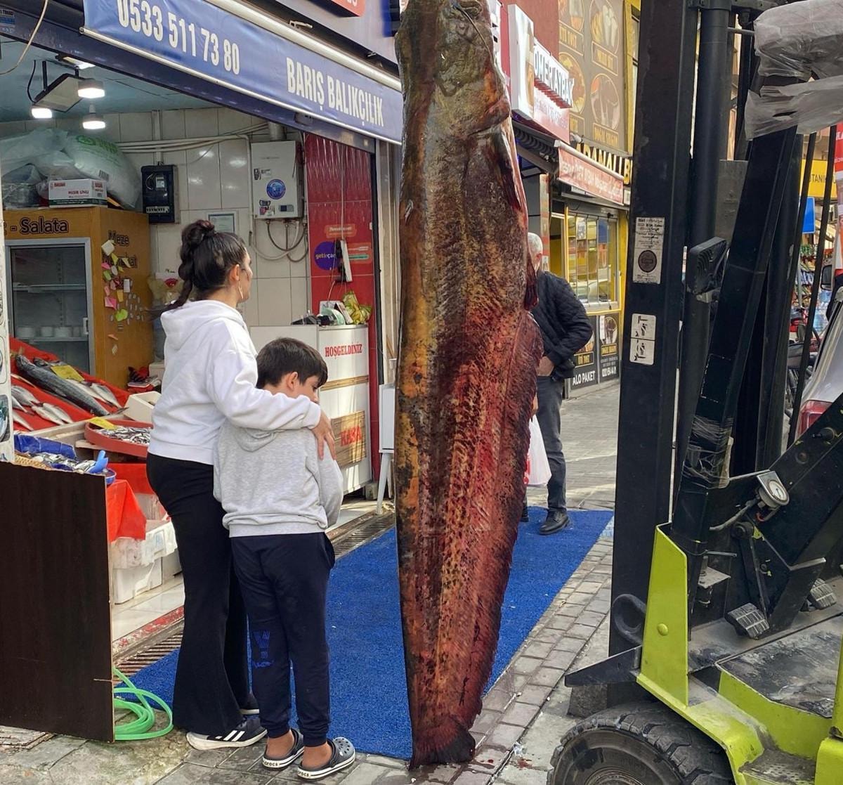 Balıkçı Barış Bayırlı, balığın temizlendikten sonra kilosunu 450 liradan satışa sunulduğunu söyleyerek, "Balığımız Edirne'nin Meriç Nehri tarafında yakalandı. Tahmini olarak 3 metre uzunluğunda ve yaklaşık 150 kilo civarında. Yayın adı verilen bu balık türünü getirip dükkanımızın önünde sergiledik. Gelen geçen durup bakıyor, fotoğraf çektiriyor. Vatandaşın büyük ilgisini çekti" diye konuştu.