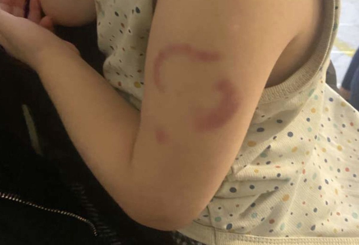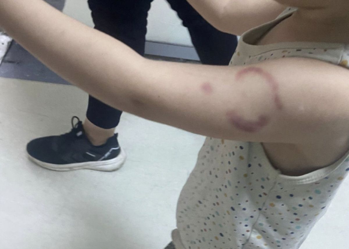 Okulda uyuduğu için öğretmeni tarafından kolunun ısırıldığını ve canının acıdığını söyleyen çocuk, gözyaşlarına hakim olamadı.