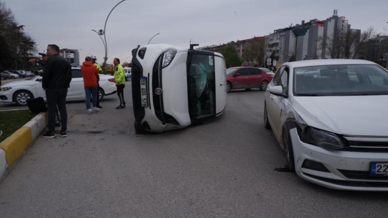 Edirne'de seyir halinde olan N.K idaresindeki hafif ticari araç ile F.D.'nin kullandığı otomobil çarpıştı.