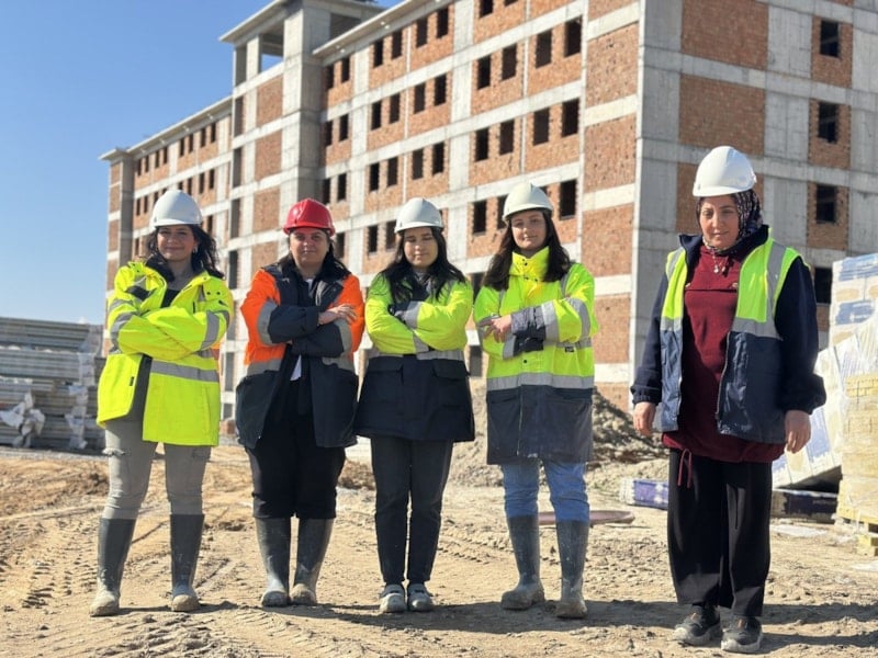Edirne'de 240 işçinin çalıştığı inşaatta görev alan inşaat mühendisi Cansu Ünlü, iş sağlığı güvenliği uzmanı Gamze Akoğlu Işık, mimarlar Yeliz Kaya ve Betül Seymen ile mutfak personeli Figen Yaman, çalışkanlıklarıyla göz dolduruyor.