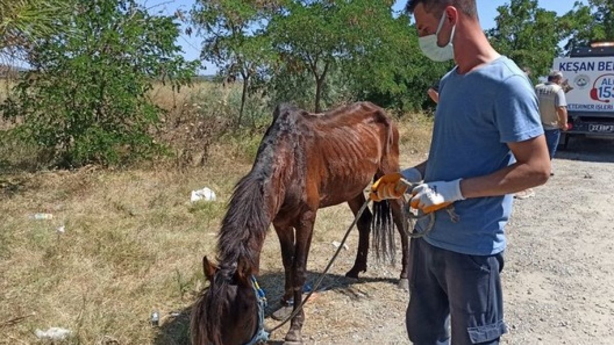 Öte yandan at ise Keşan Belediyesi tarafından teslim alınırken, koşum takımları ise sahibine geri götürüldü.