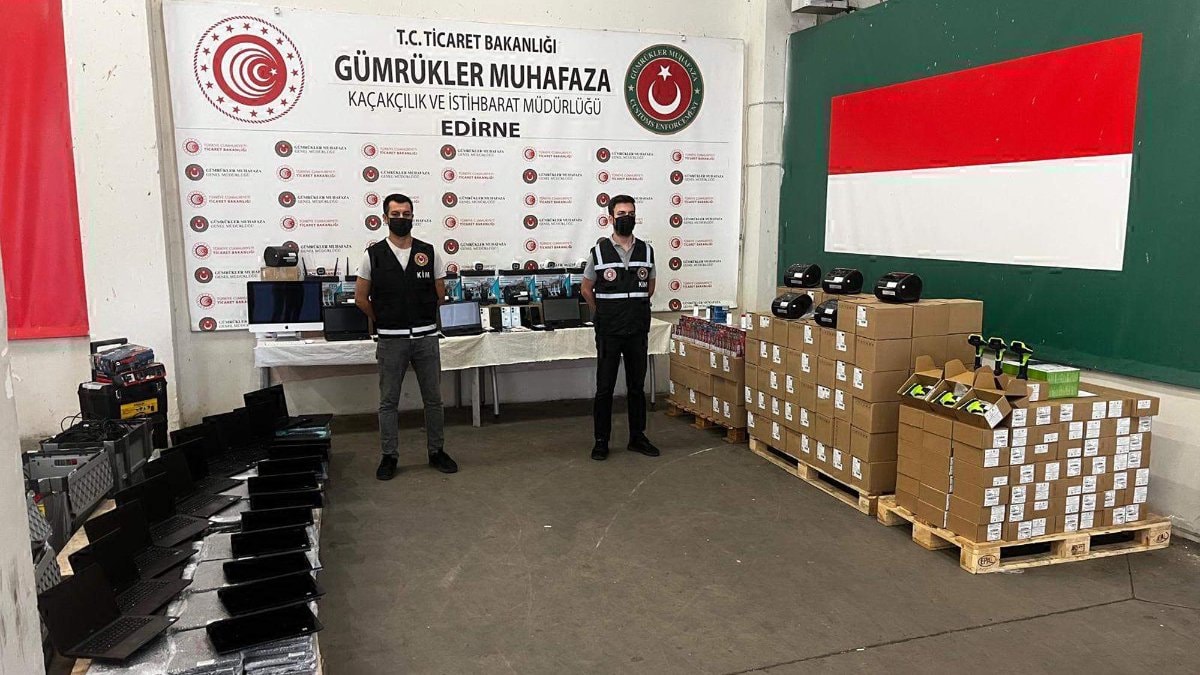 Ekipler, yaptıkları aramada, çeşitli eşyalarla doldurulan dorsede, faturasız ve belgesiz 228 dizüstü bilgisayar, 3 masaüstü bilgisayar, 150 barkod yazıcı, 150 barkod okuyucu, 20 wifi ve 4 kameralı kamera sistemi, 245 şarj adaptörü, 7 telsiz ve ekipmanı, 66 çeşitli eşya ele geçirildi.