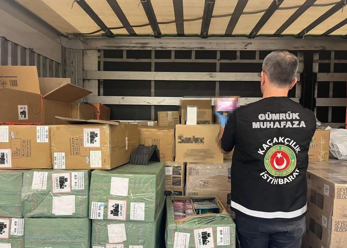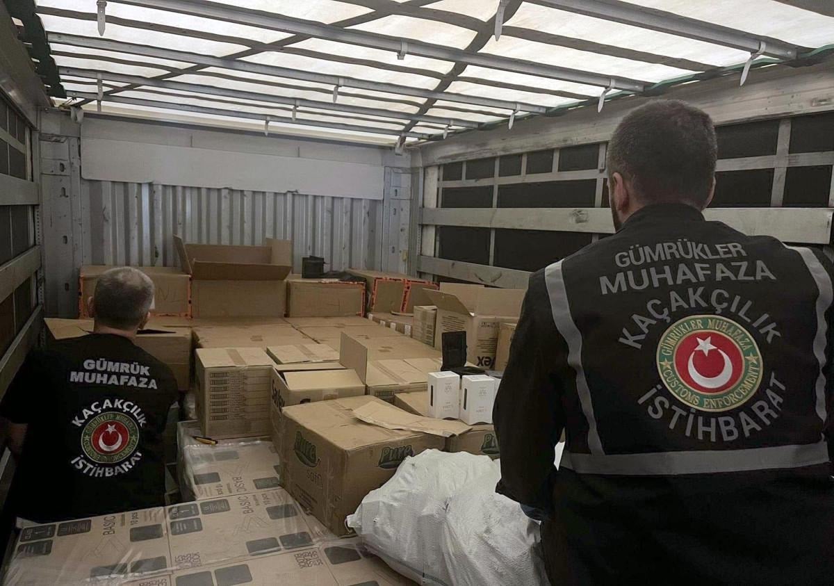 Kapalı Devre Televizyon Sistemi'nden (CCTV) izlenmeye alınan tırın şoförünün tedirgin davranışları üzerine aranan araçta ülkeye girişi yasak olan 19 bin 980 elektronik sigara ve 140 oto parçası ele geçirildi.