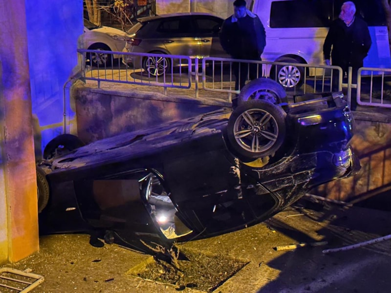 Edirne'de kontrolden çıkan otomobil, bir sitenin bahçesine düşerek ters dönerken sürücü ise kazayı hafif sıyrıklarla atlattı.