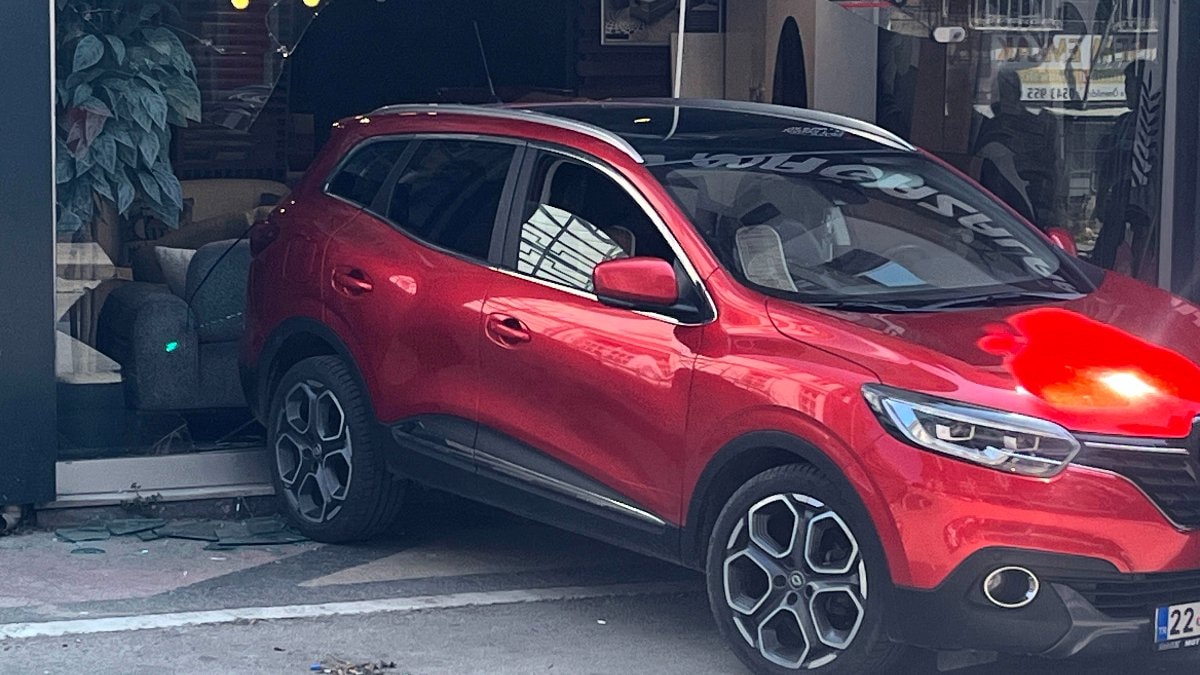 Otomobil, karşı kaldırımda bulunan mobilya mağazasının camekanına çarparak içeri girdi.