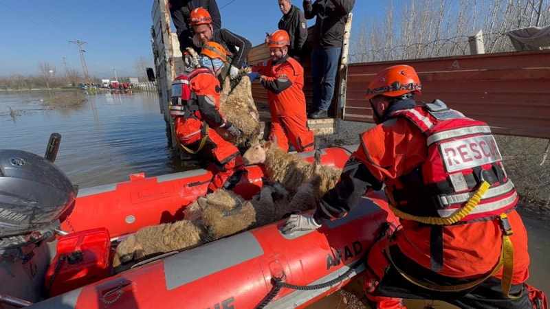 Edirne’de nehir taşkınlarının etkili olduğu bölgelerde besi çiftlikleri sular altında kaldı. Yüzlerce koyun mahsur kalırken ekipler, botlarla yürütülen operasyonla hayvanları güvenli alanlara taşıyor.