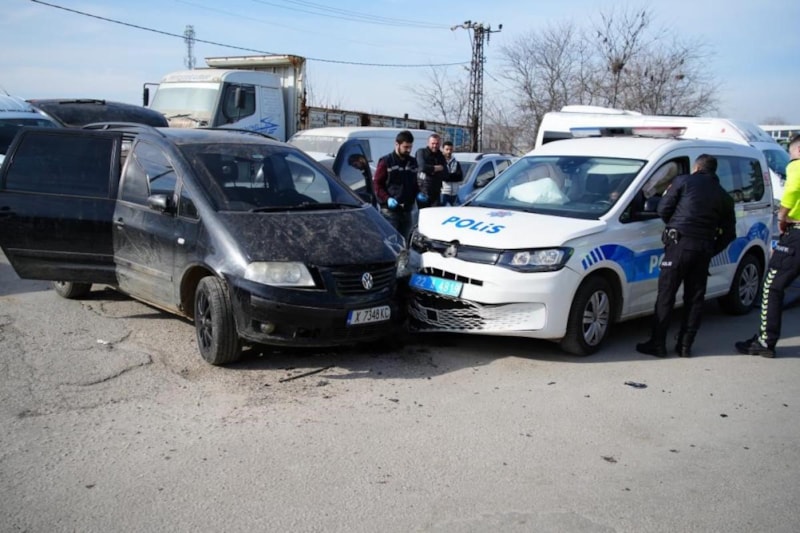 Edirne'de sürücünün kaçmaya çalıştığı aracıyla çarptığı ekip otosundaki iki polis yaralandı. Kaza yapan araçtan inen yaralı polislerin, 23 suç kaydı bulunan suçlunun peşinden koşmaları ve havaya ateş açmaları kameraya yansıdı.