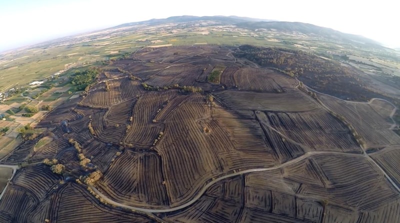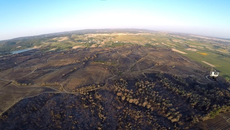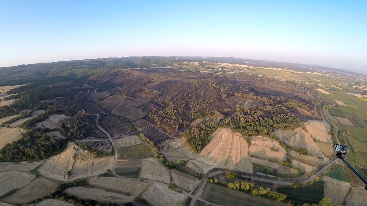 Yangında zarar gören alanlar, paramotor pilotu Yılmaz Özkaya tarafından havadan görüntülendi.