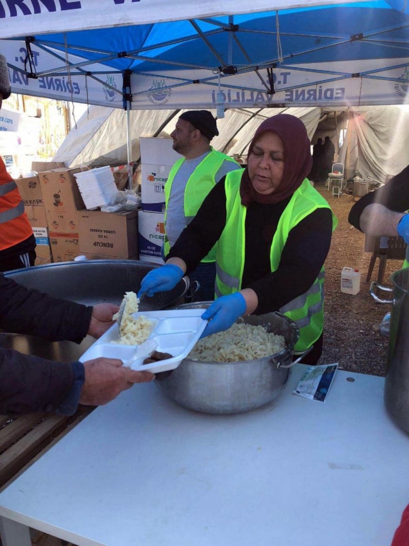 Edirne'de lokanta işleten Şenay Sağlam, deprem felaketinin ardından Trakya Üniversitesi'nin oluşturduğu gönüllü grubuna katılıp, Kahramanmaraş'ın Elbistan ilçesine giderek 13 gün boyunca yemek yaptı.