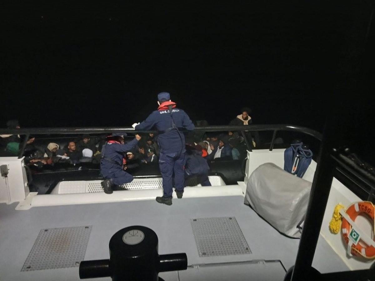 Görevlendirilen Sahil Güvenlik Botu (TCSG-902) tarafından hareketli lastik bot durdurularak, yasa dışı yollarla yurt dışına çıkmak isteyen 3'ü çocuk 41 göçmen yakalandı. Yine Dikili ilçesi açıklarında yasa dışı yollarla yurt dışına çıkmak isteyen 1'i çocuk 38 göçmen, Sahil Güvenlik ekiplerince yakalandı.