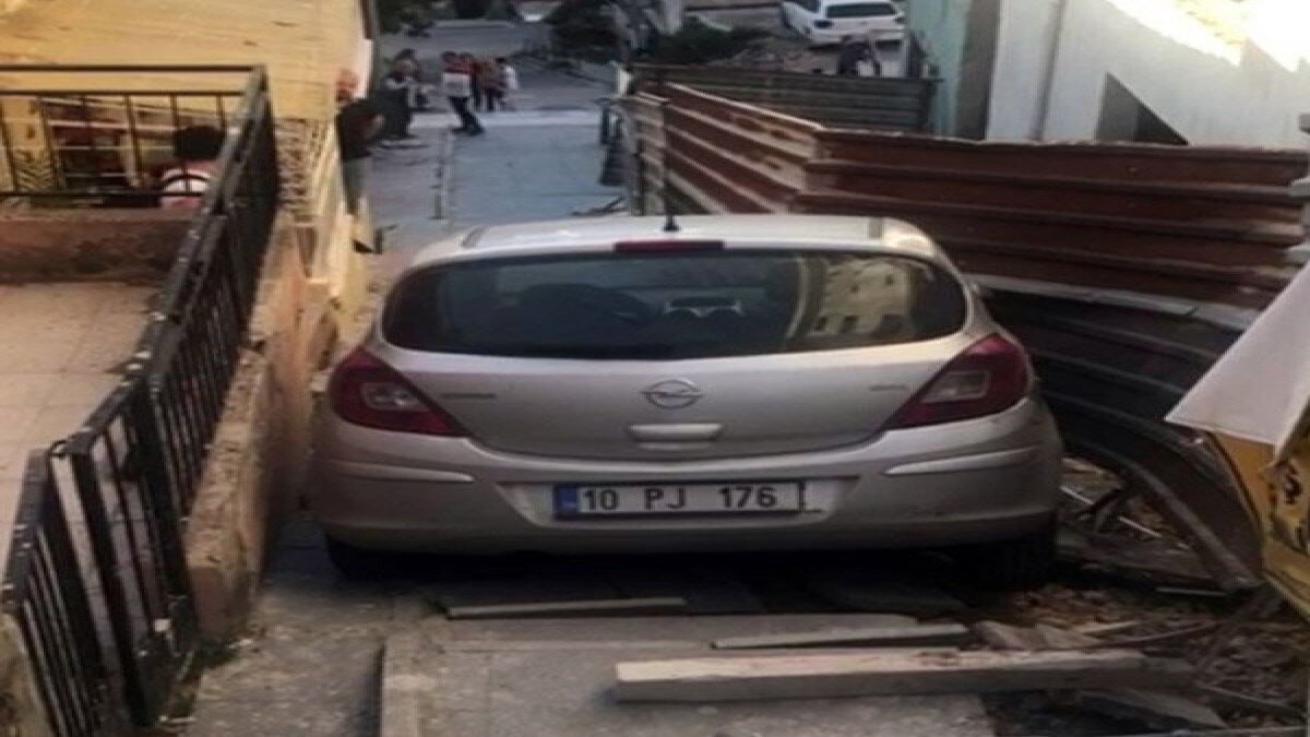 Akşam saatlerinde Konak ilçesine bağlı Altıntaş Mahallesi 340 sokakta meydana geldi. İddiaya göre, sokağa giren bir otomobilin sürücüsü aracını yokuşa park etti ve el frenini de tam çekmedi. Bu esnada birden yokuş aşağı hareket etmeye başlayan ve giderek hızlanan otomobil, sokağın karşısındaki merdivenlere uçtu. Otomobil merdivenlerde bulunan inşaat demirlerine asılı kaldı.