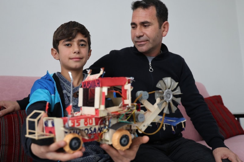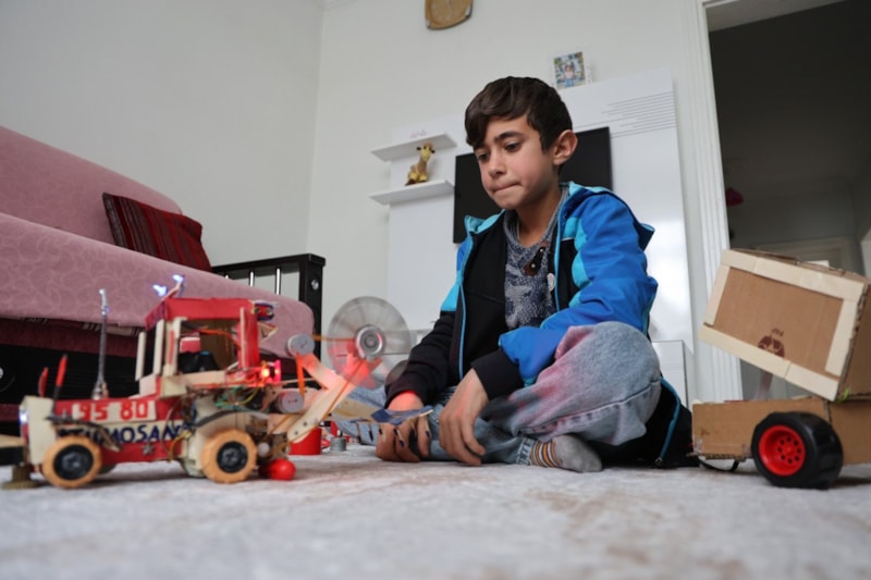 Atık malzeme ve bozuk oyuncakların içinden çıkanlarla bu traktörü yaptım. Adım, Selçuk. Selçuk Bayraktar'ı izliyorum, takip ediyorum. İnşallah, büyüdüğümde daha büyük icatlar yapabilirim. En büyük amacım, bir gün Selçuk Bayraktar'ın yanına gitmek" dedi.