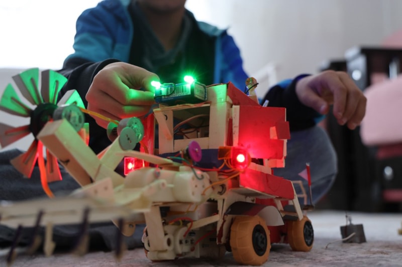 Selçuk Bayraktar'ı yakından takip ettiğini belirten Selçuk, "Ben 12 yaşındayım. Babamın yaptığı şeyleri görerek başladım. Babamın verdiği harçlıklarla gidip çubuk ve yapıştırıcı alıyorum. Babam da elektrik işi yapıyordu, ondan gördüm. Yaklaşık dört ay uğraştım. Küçük görünüyor olabilir ama benim için çok zor bir çalışmaydı.