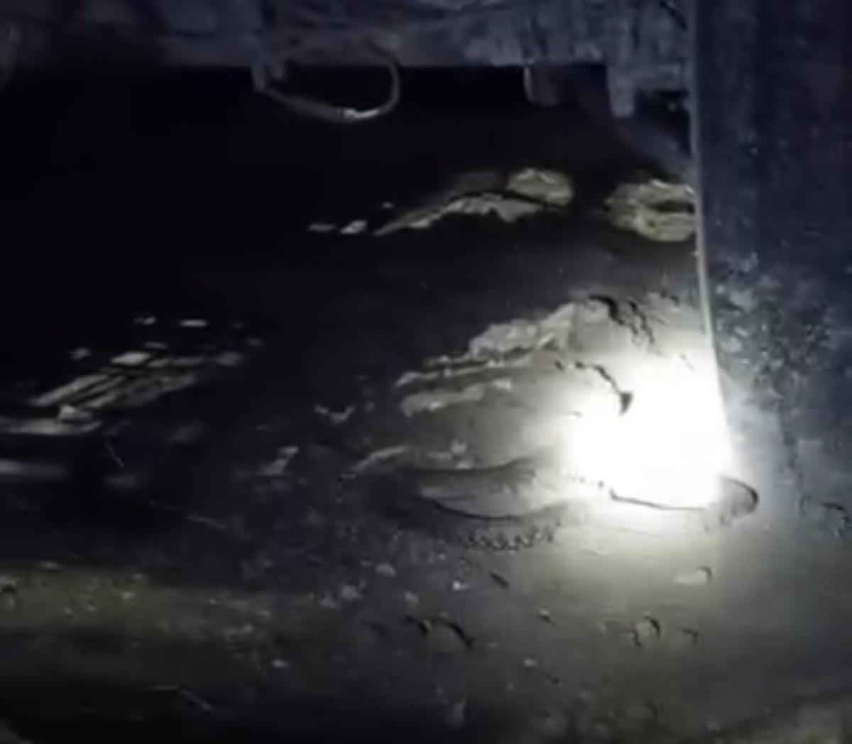 Bir kişi, zehirli yılanı gece saatlerinde traktörün altında fark etmesi sonrası üzerine el feneri tutarak o anları kayda aldı.