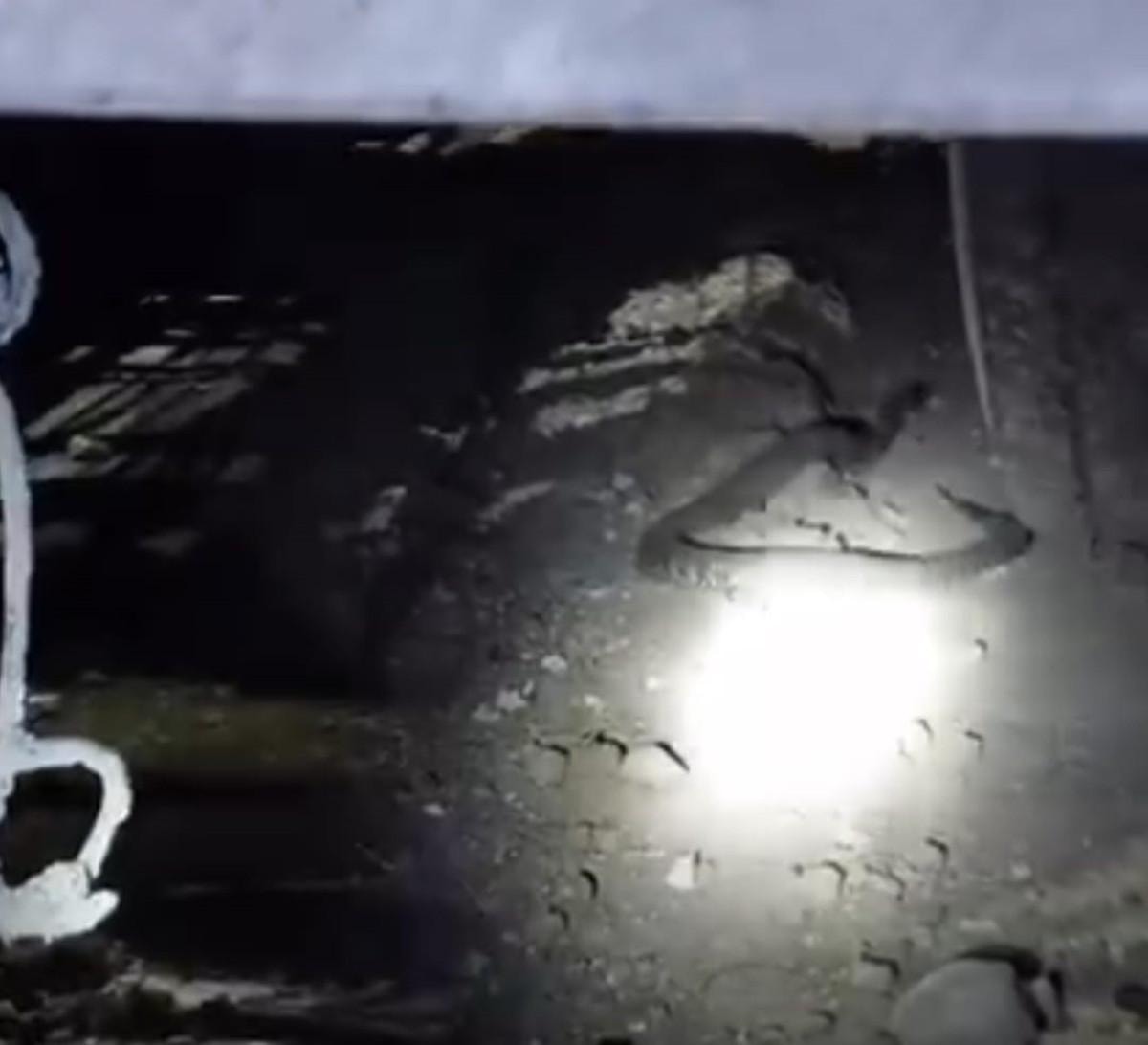 Görüntülerde, yılanın, sonradan gözden kaybolduğu görüldü.