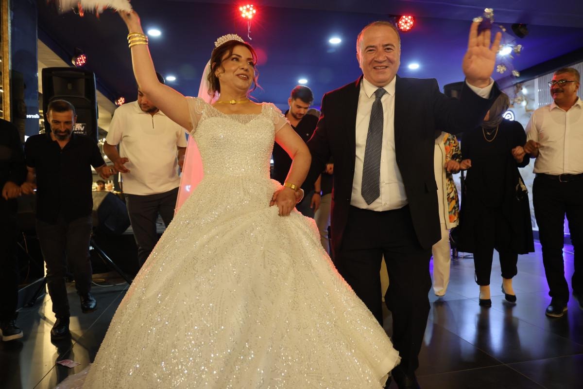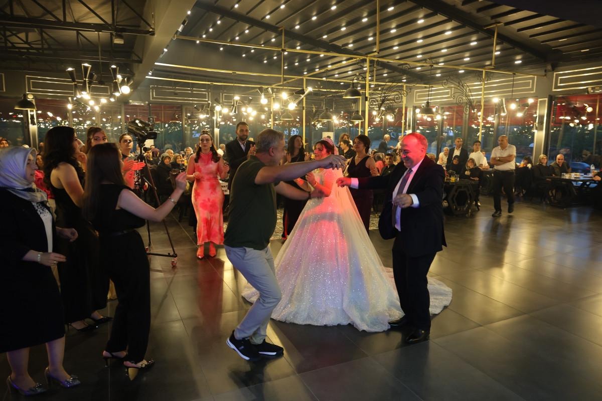 Evlilikleri hayırlı olsun, Allah mutlu mesut etsin. Diyarbakır'dan, İzmir'den gelen ve Elazığ'dan katılan arkadaşlarımız var." ifadelerini kullandı.