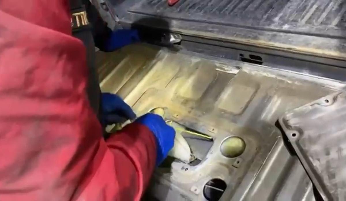 Yapılan aramada, bagaj kapağı sacı içerisine zulalanmış şekilde, 11 parça halinde 5 kilo metamfetamin maddesi ele geçirildi.