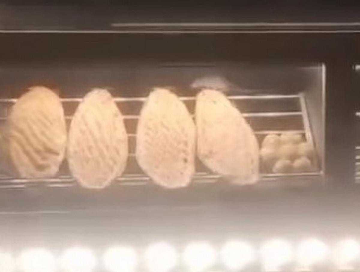 Cep telefonunu çıkartarak o anları kayda alan vatandaş, farenin tezgahta bulunan ekmeklerin üzerinde gezdiği anları kaydetti.