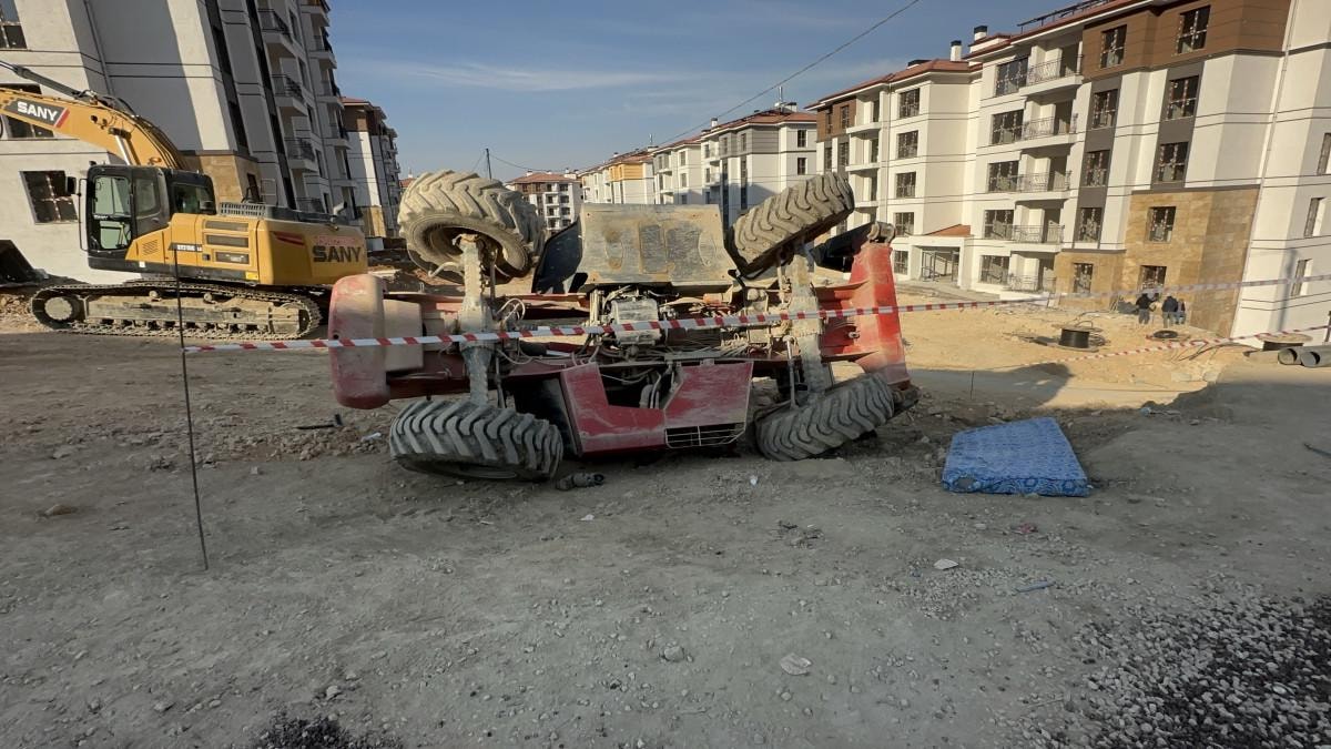 Kent merkezine bağlı Sarı Çubuk köyündeki bir inşaat şantiyesinde, çalışmaların devam ettiği alanda kepçe devrildi.