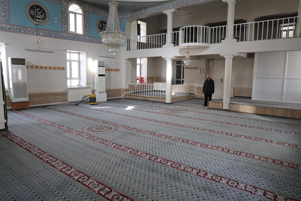 Namazı bırakan bazı vatandaşlar, yanan halıyı su ile söndürdü.