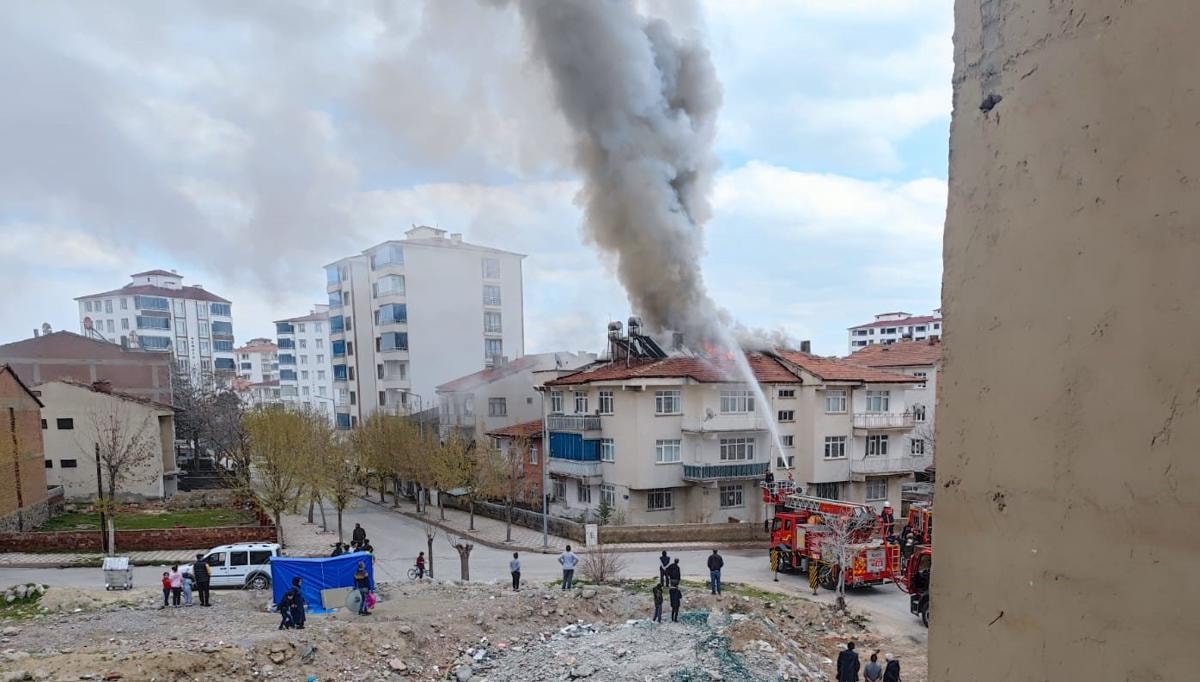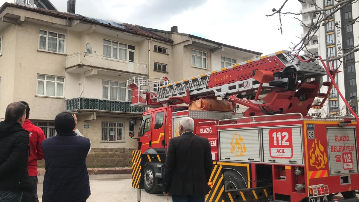Elazığ'da Kırklar Mahallesi Şehir Çavuş Ebubekir Çakıçı Sokak’ta 3 katlı bir binanın çatısında henüz bilinmeyen bir nedenden dolayı yangın çıktı.