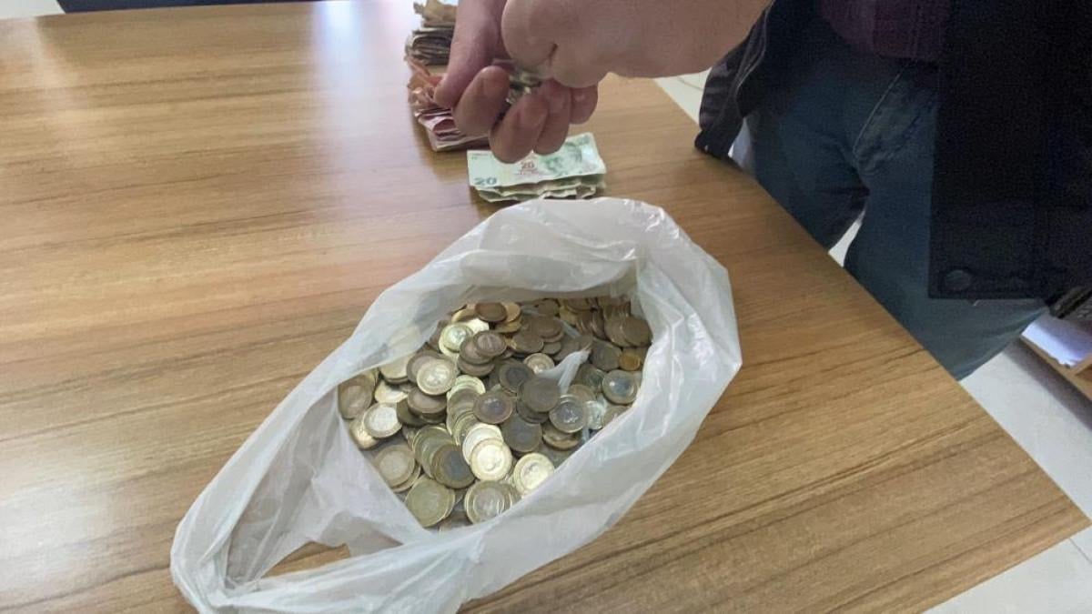 Ekipler dilencinin üzerinden çıkan parayı saydıktan sonra işlem yaparak el koydu.