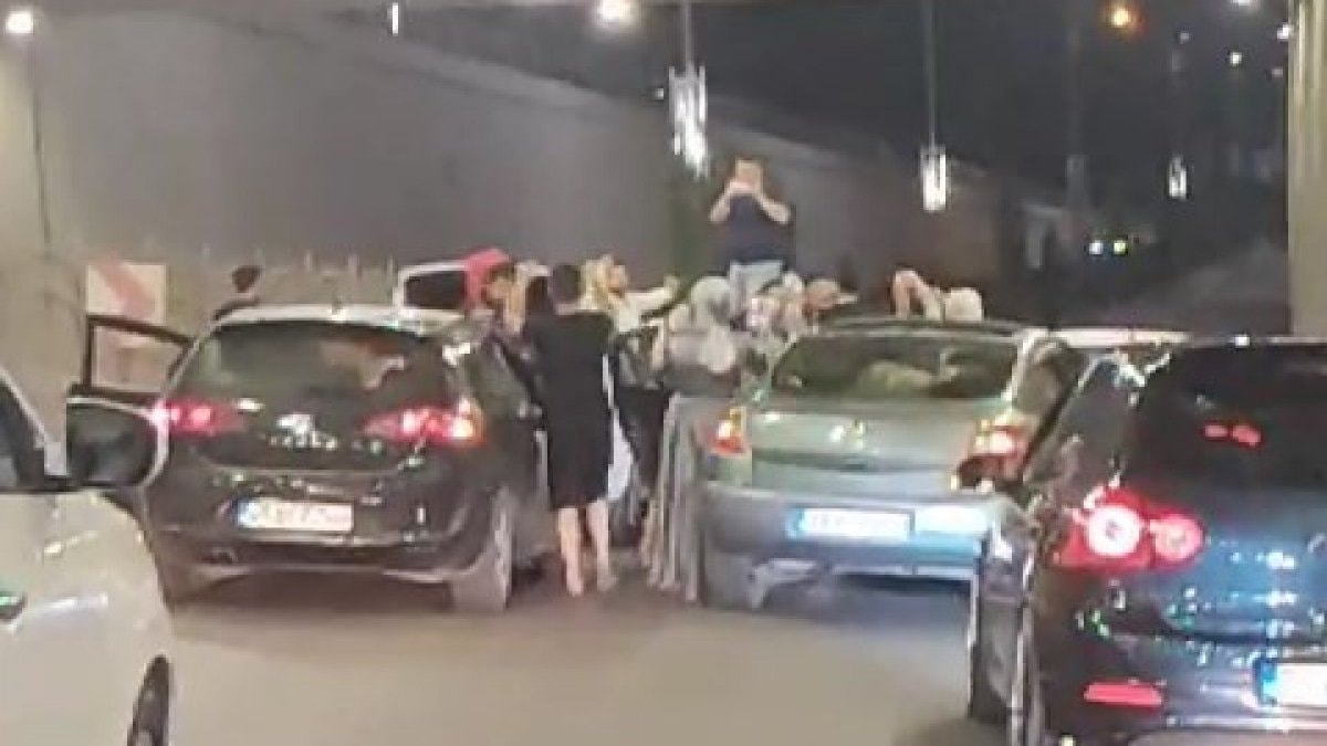 Dün akşam saatlerinde düğün konvoyu yapan bir grup, İstasyon Caddesi’ndeki alt geçitte durarak, yolu trafiğe kapattı.
