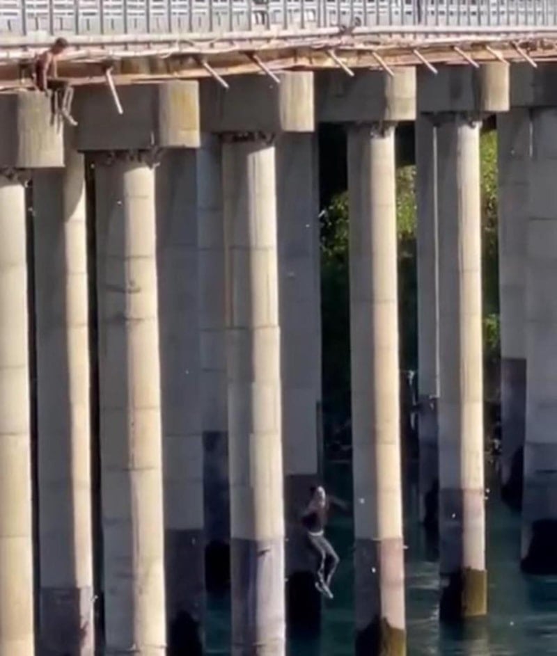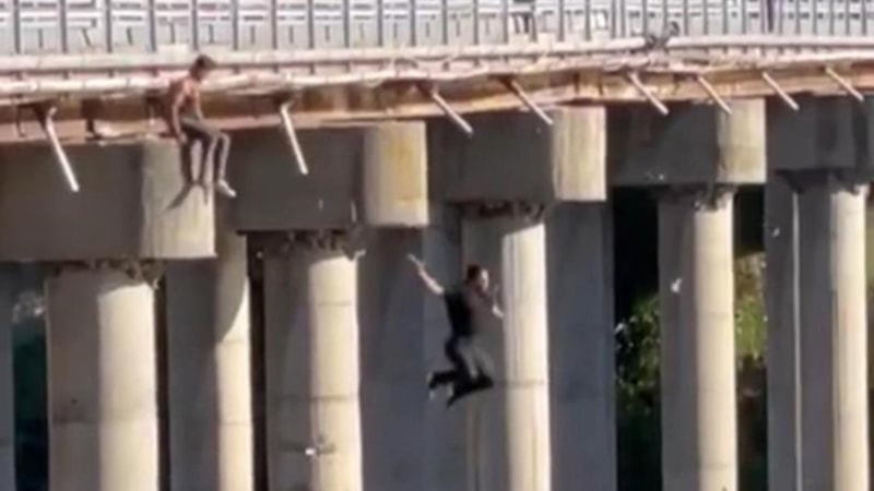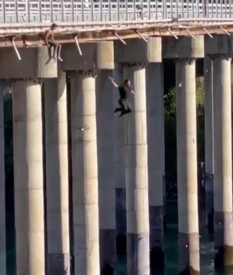 Elazığ'da Keban Köprüsü'nden atlayan gençlerin tehlikeli eğlencesi görüntülendi.