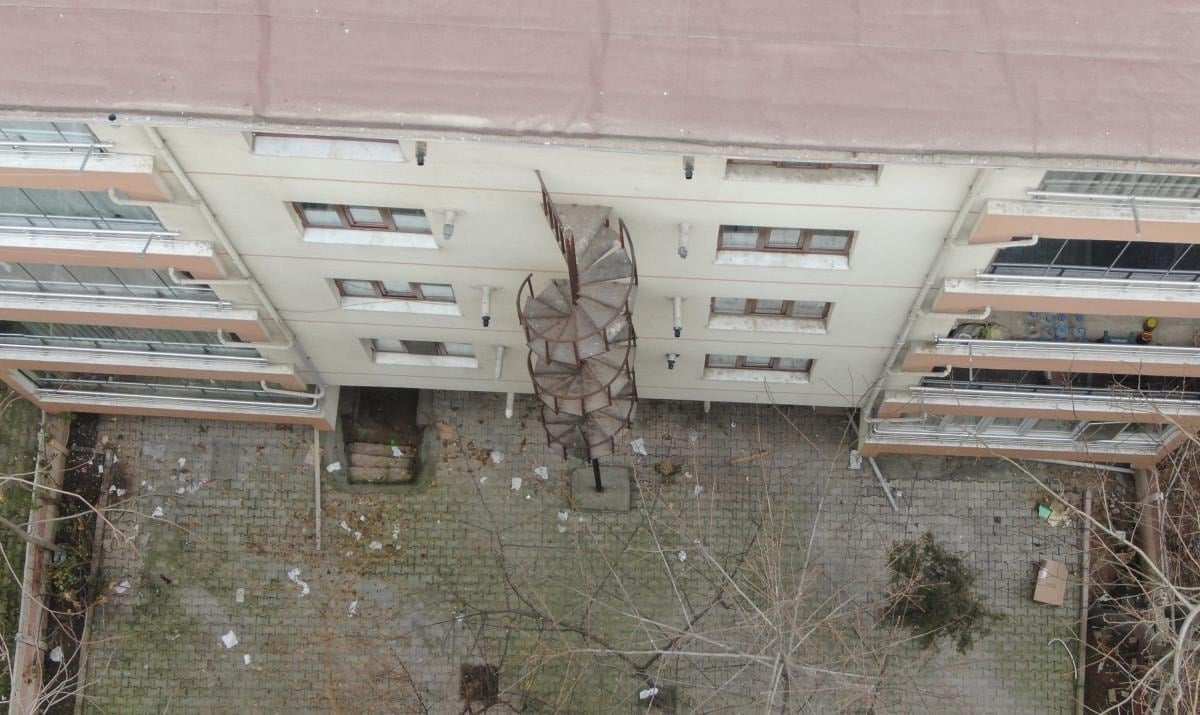 Binanın dış cephesine monte edilen yangın merdivenine giriş ve çıkışın olmadığı görüldü.
