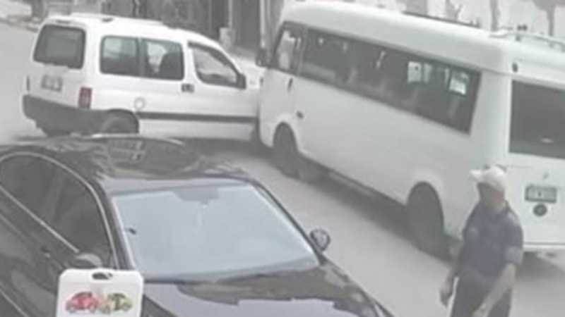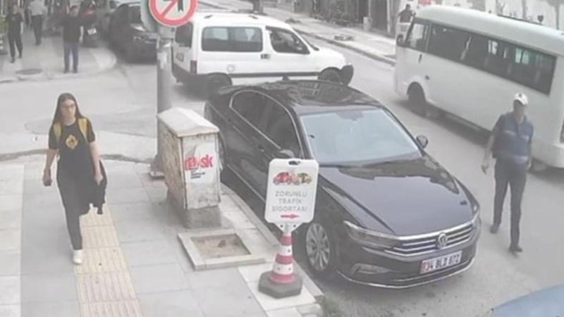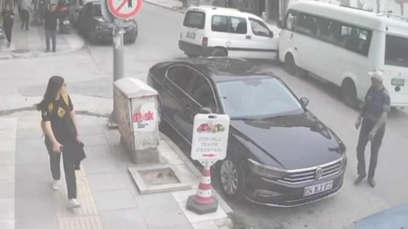 Maddi hasar meydana gelen kaza, bir iş yerinin güvenlik kamerası tarafından görüntülendi.
