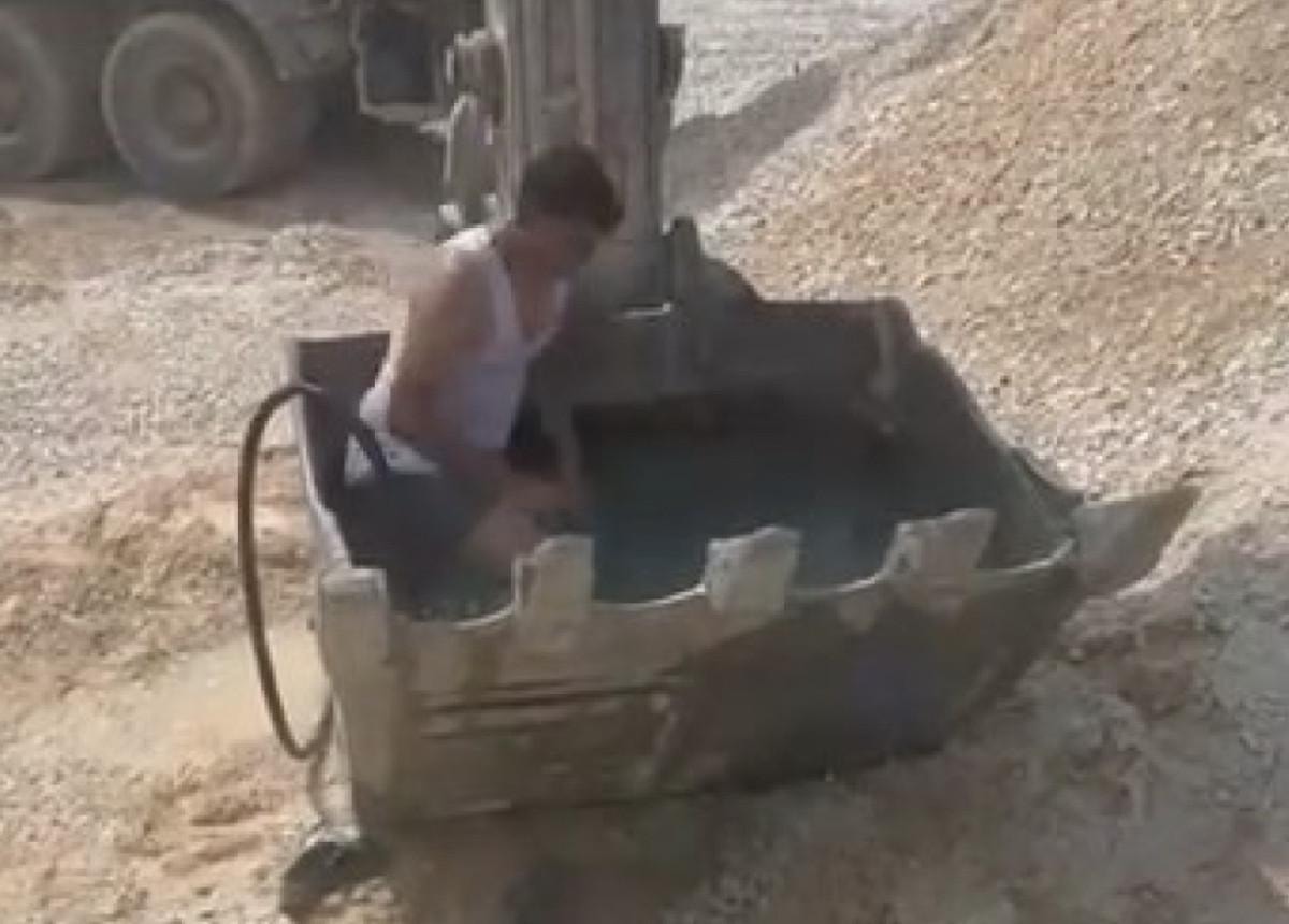 Sıcaklıklardan en çok etkilenenler arasında bulunan inşaat işçileri ise serinlemek için farklı bir yol buldu.