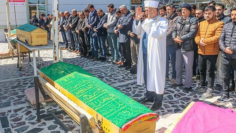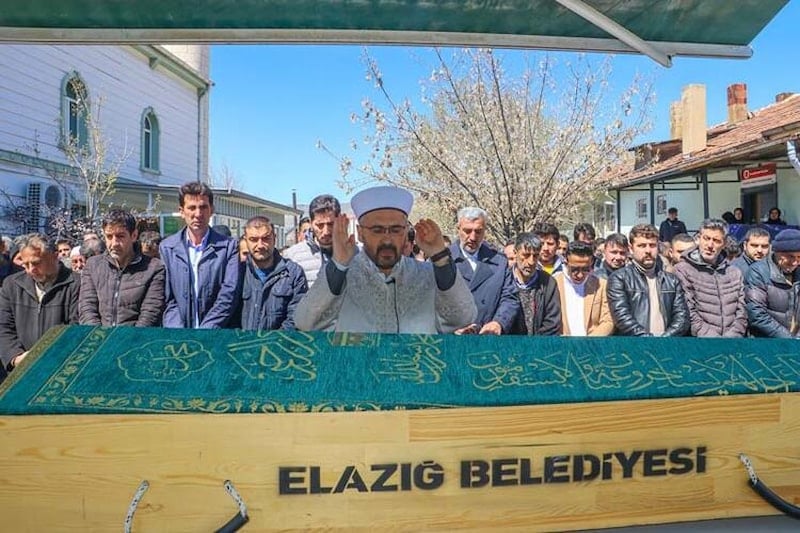 Fırat Üniversitesi Hastanesi'nin morgunda otopsi işlemleri tamamlanan ailenin cenazeleri, yakınları tarafından teslim alınarak Salı Baba Camii'ne getirildi. Yakınları fenalık geçirirken, aile bireylerinin tabutları yan yana konulup cenaze kılındı.