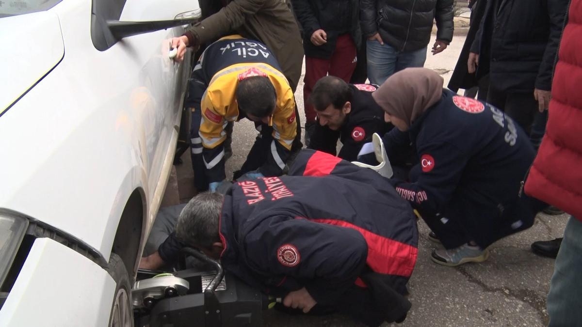 Otomobilin altında kalan kurye A.A., ağır yaralandı.