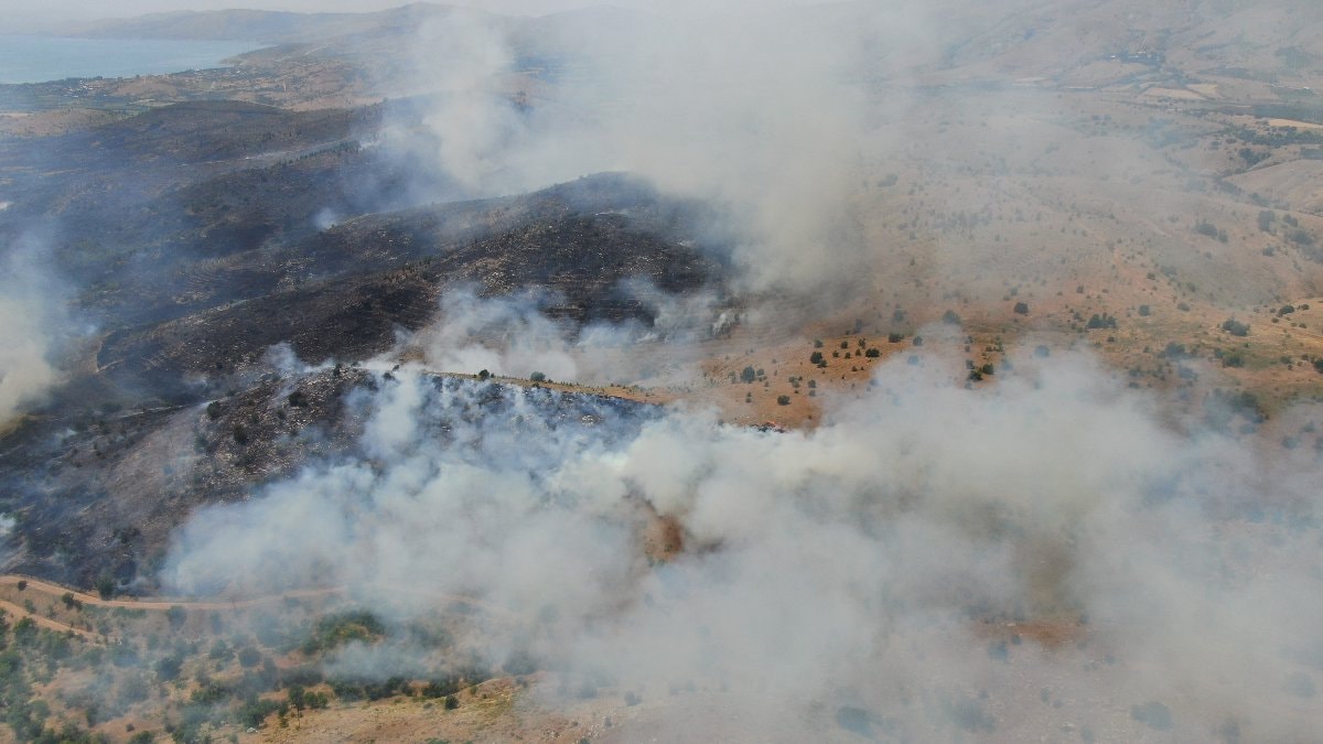 Geniş bir alana yayılan yangın söndürme çalışmalarına aynı zamanda helikopterler, Hazar Gölü'nden su alarak destek verdi.