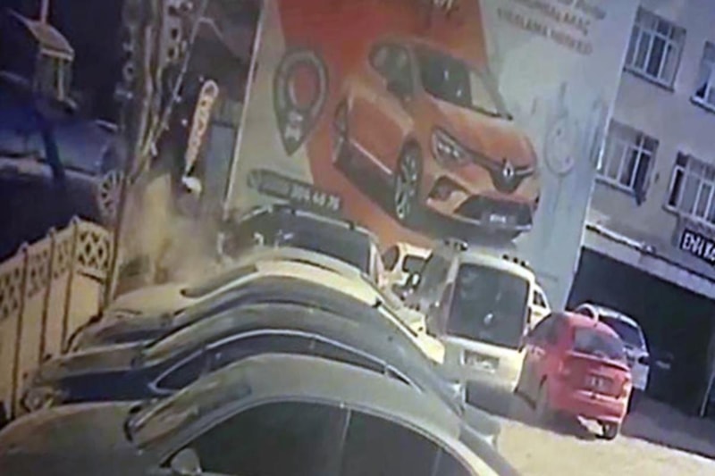 Görüntülerde M.Y.’nin kullandığı otomobil önüne aldığı S.N.B. ve K.Ç.'ye vurup önüne alarak duvara çarptığı, kazanın ardından da çevrede bulunan vatandaşların yardım için bölgeye koştuğu görünüyor.