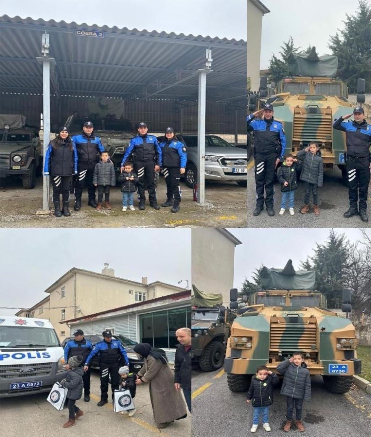 Elazığ Emniyet Müdürlüğü Toplum Destekli Polislik Şube Müdürlüğü ekipleri, bir vatandaşın 4 ve 7 yaşlarındaki çocuklarının polislik mesleğine ilgi duyduklarını öğrendi.
