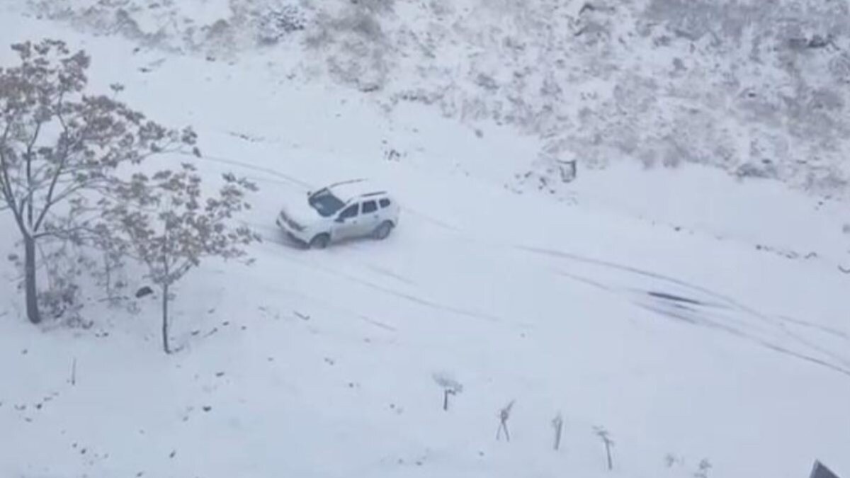 Çaydaçıra Mahallesi’nde bir otomobil, karla kaplanan bir rampayı çıkmaya çalışırken aşağı doğru sürüklendi. Aracın geldiğini gören bir kişi kenara çekilirken, otomobil ise park halindeki araca çarptı.