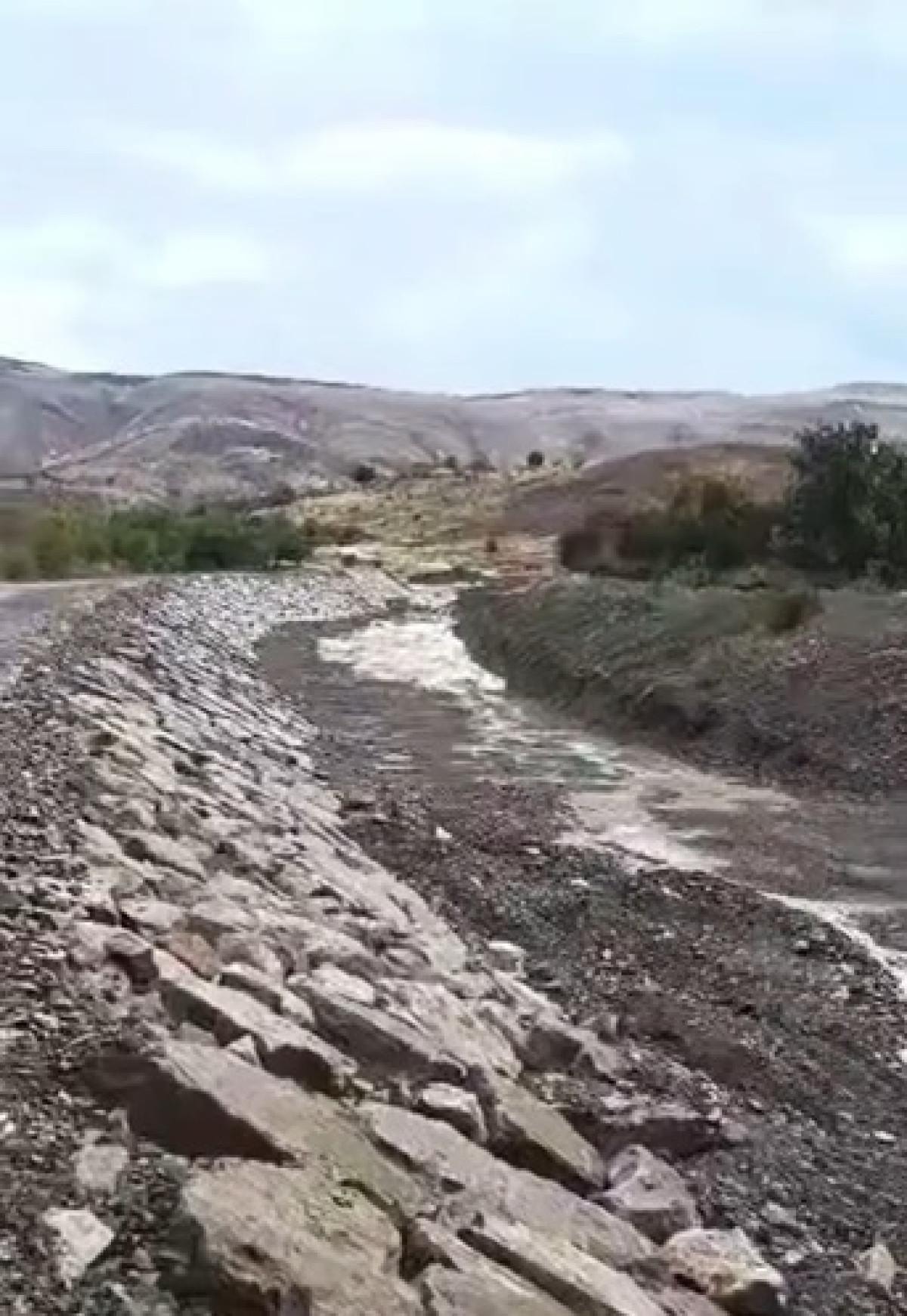 Elazığ'da etkili olan şiddetli yağmur ve dolu sırasında Keban ilçesine bağlı Gökbelen köyü yolu su altında kaldı.