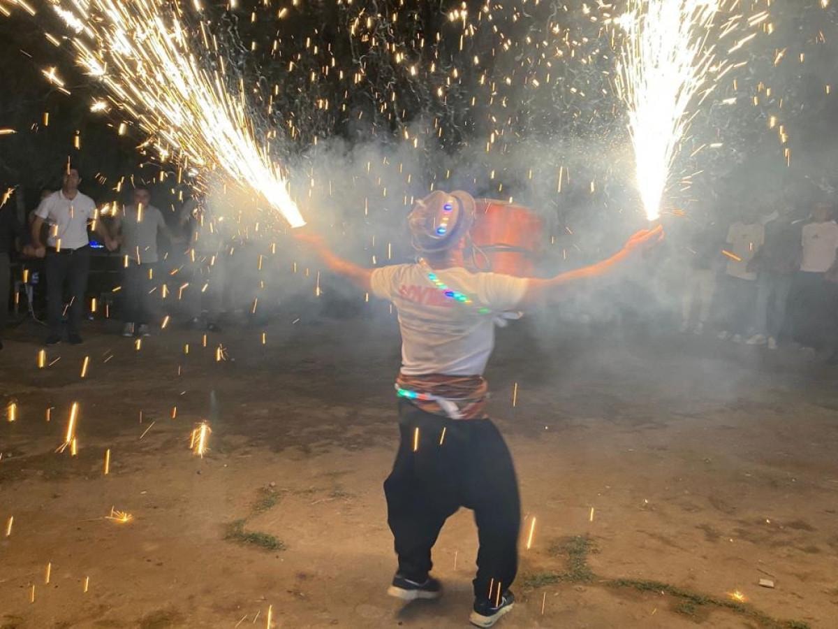 Alana ağzında ve kafasında meşaleler ile giren davulcu, ateşten oluşturduğu çemberin içerisinde yaptığı şovlarla davetlileri coşturdu.